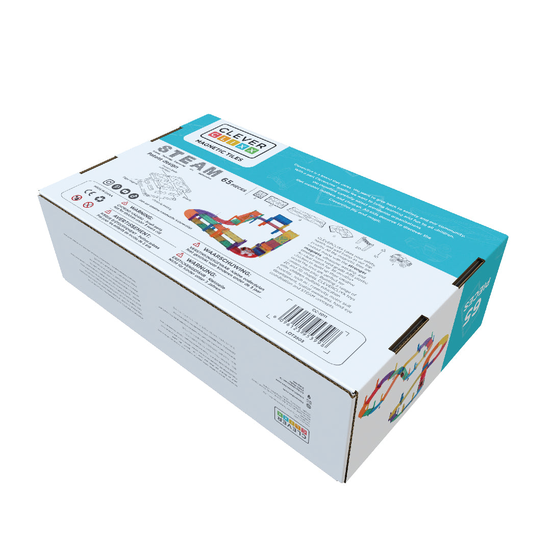 Vi får av og til kommentarer om at man ikke kan bygge alt som er vist på esken. Cleverclixx tilhører kategorien "Open Ended Play", noe som betyr at du selv skal bruke fantasien og være kreativ. Du kan lage hundrevis av ulike kreasjoner med dette racerbane-settet – så finn på din egen versjon!