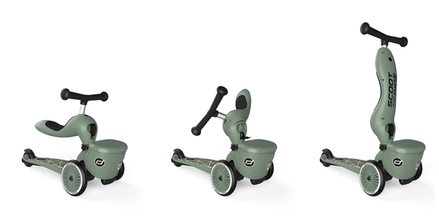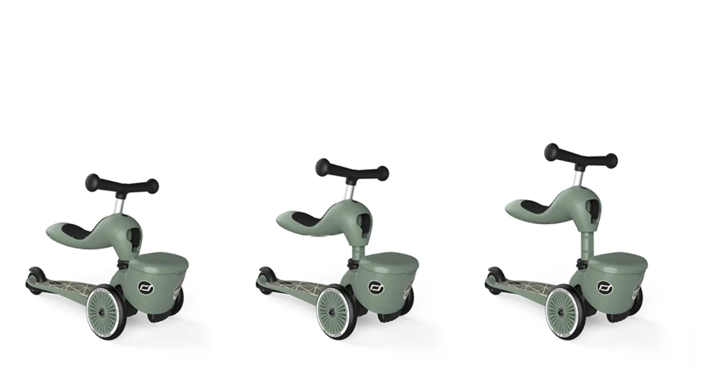 Med Highwaykick 1 får du en 2-i-1 sparkesykkel og løpesykkel for barn i alderen 1 til 5 år. Barnet kan selv velge om de vil sitte eller stå, noe som gjør det mulig å for selv ettåringer å bruke denne modellen.