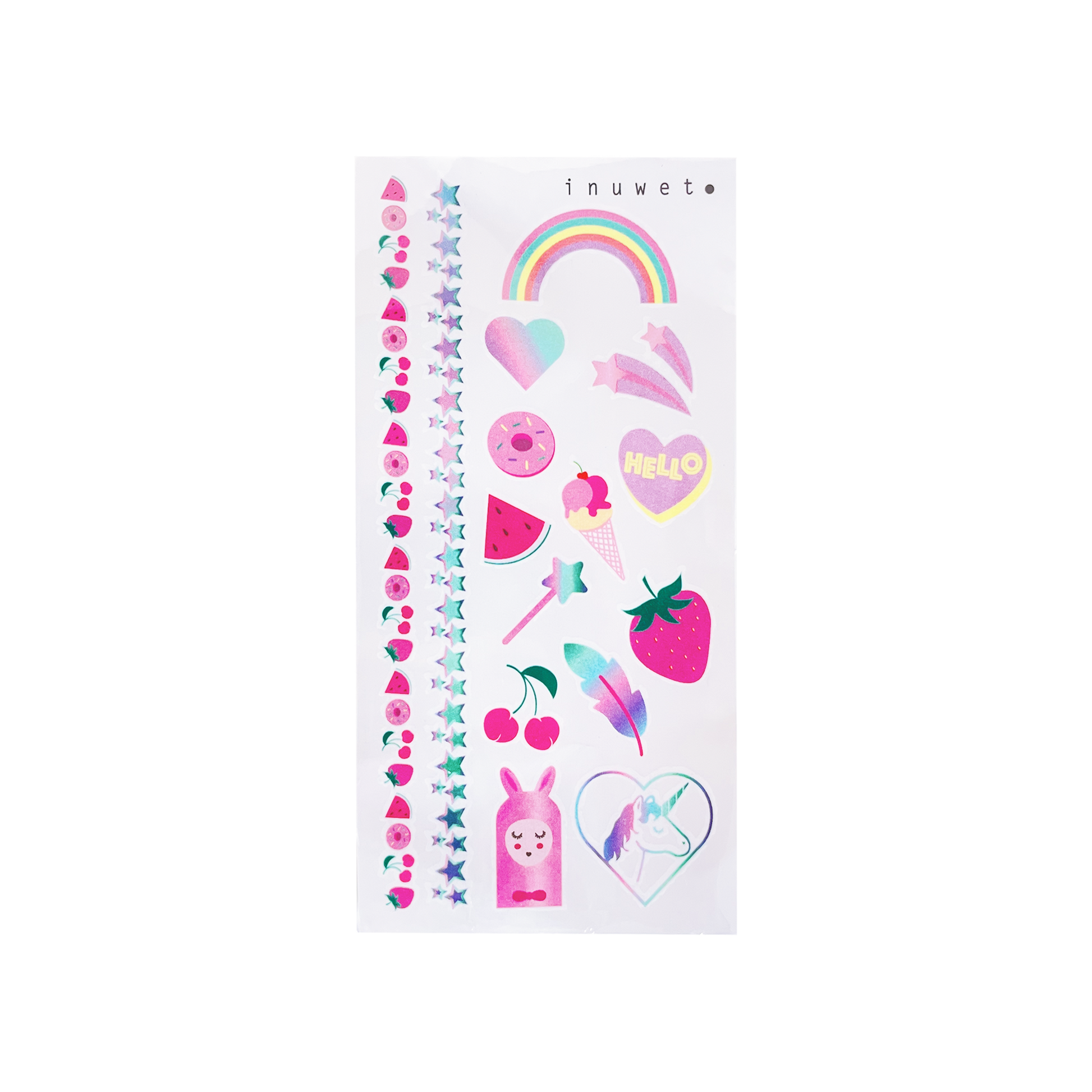 INUWET MY LITTLE BEAUTY HOUSE: strass - temporary tattoo - blueberry and apple waterbased nail polishes