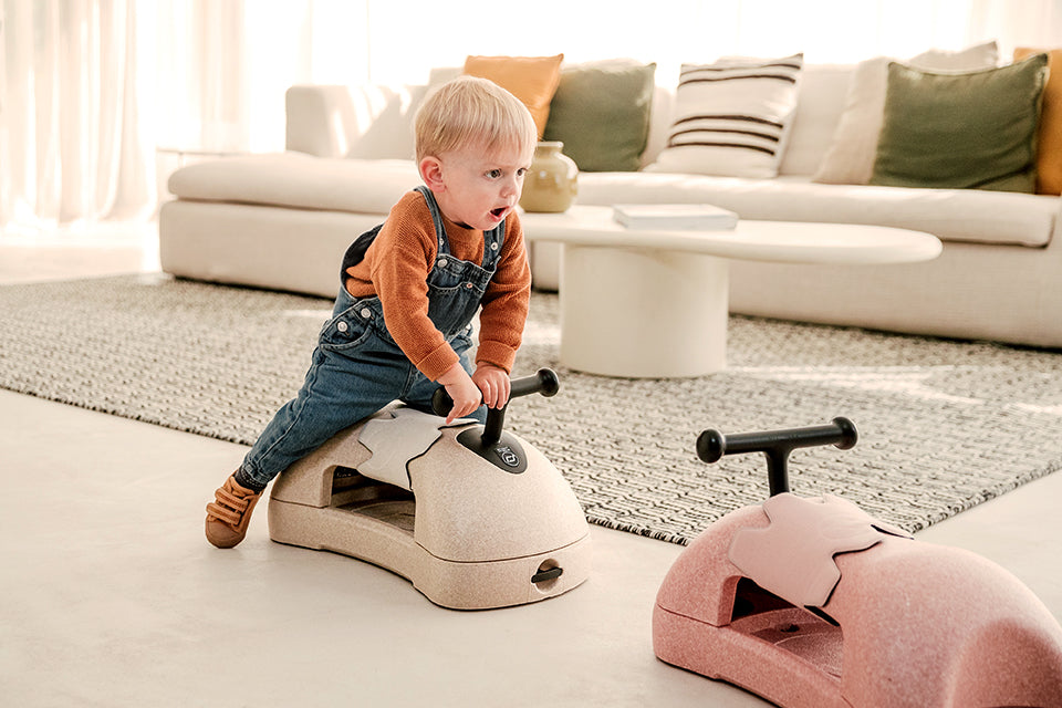 Den andre funksjonaliteten er Ride-on. Når babyen begynner å gå, viser My First sin innovative multifunksjonelle karakter. Bare snu bunnplaten, og du har ditt første leketøy til å sitte på, gjort på sekunder uten verktøy.